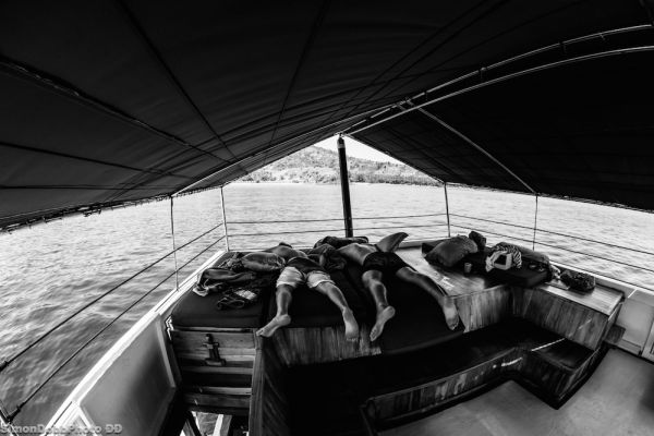 Leaving the main room you enter a spacious seating area at the back of the boat. Great for relaxing after a meal or a surf ... and a lovely place to fall asleep as we journey from one surf spot to another.