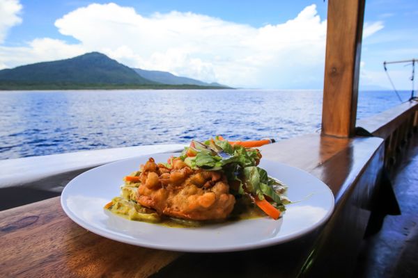 Bulan Baru has air conditioning and sleeps up to 10 guests in large beds with extra thick mattresses (we know how important a good sleep is after a long day of surfing!). Above the sleeping area and on the main deck is the main room for dining and recreation. This is a large, very light area with plenty of seating and table space.